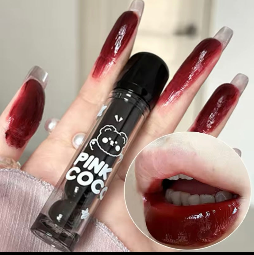 Hochpigmentierter roter flüssiger Lippenstift, dunkelroter, spiegelbrauner Lippenstift, leichte Befeuchtung mit Wasser, Antihaftbecher, Lippenkosmetik